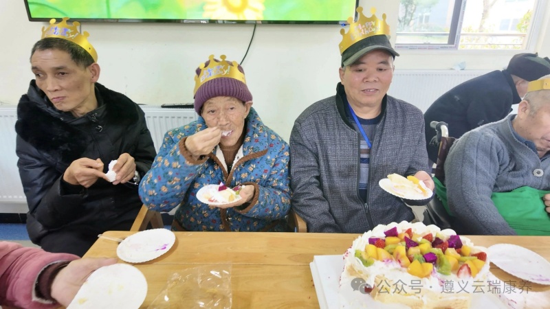.令人期待的环节在温馨旋律中拉开序幕——工作人员点亮生日蜡烛,全体人员共同唱响生日歌。寿星们闭眼许愿、吹灭蜡烛,工作人员将切好的蛋糕依次送到每位长辈手中,对行动不便、乘坐轮椅的老人,更是弯腰贴心喂食。60岁的罗伯伯感动地说:“这是我过的.有意义的一个生日,谢谢你们!”简单的话语里,满是对康养中心服务的认可与肯定。